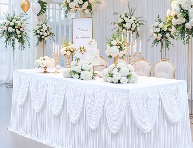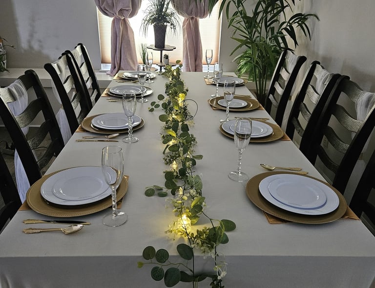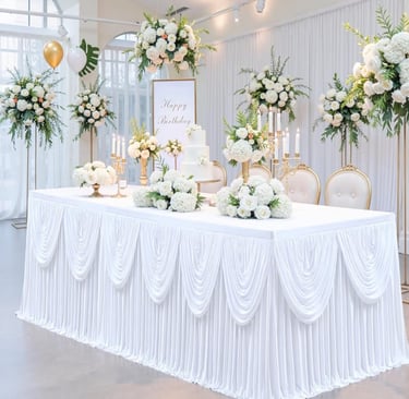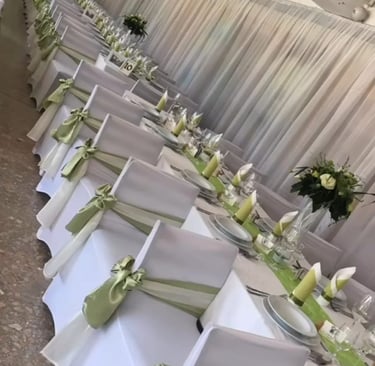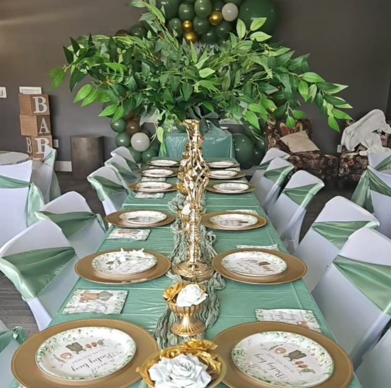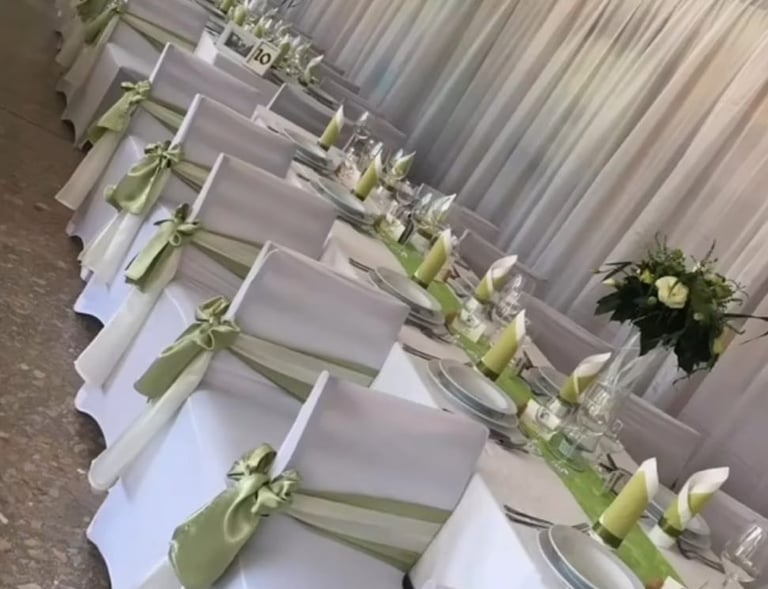 Chair - Table square - Table rond - Charge plate - Chafing dish - Wire chafer stand - Table cloth rectangle or rond - Table skirt - Tents kichen tool - Baby shower - Weeding...
